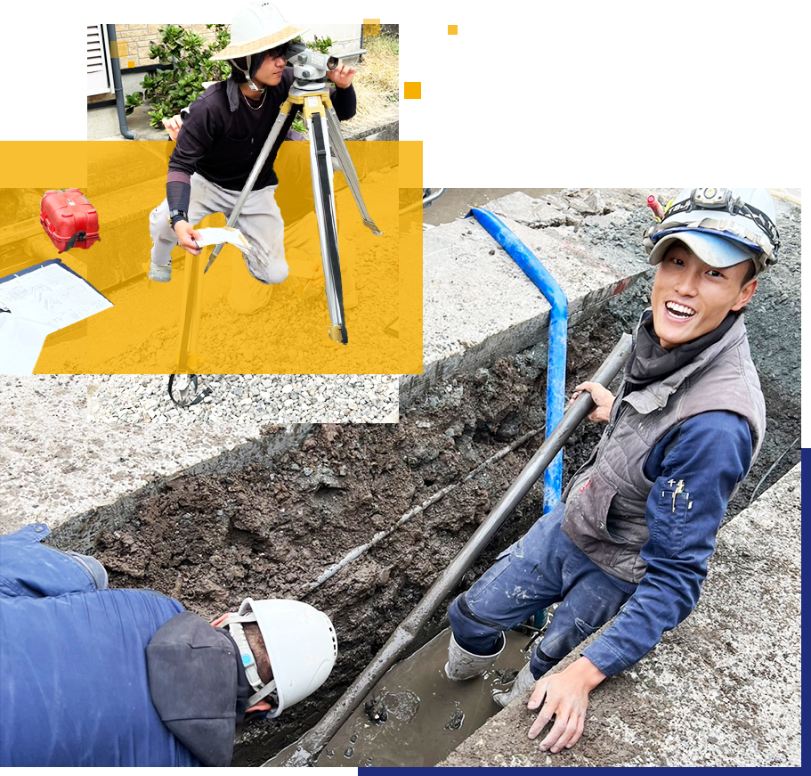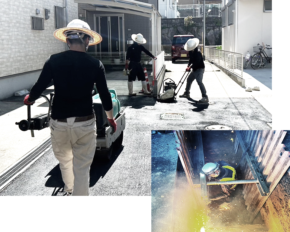私たちが行うのは、下水道工事・一般土木工事・外構工事です。